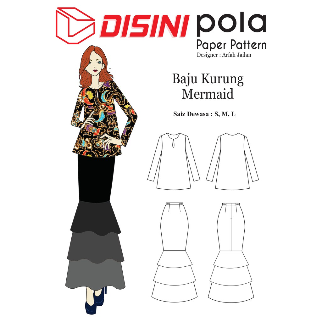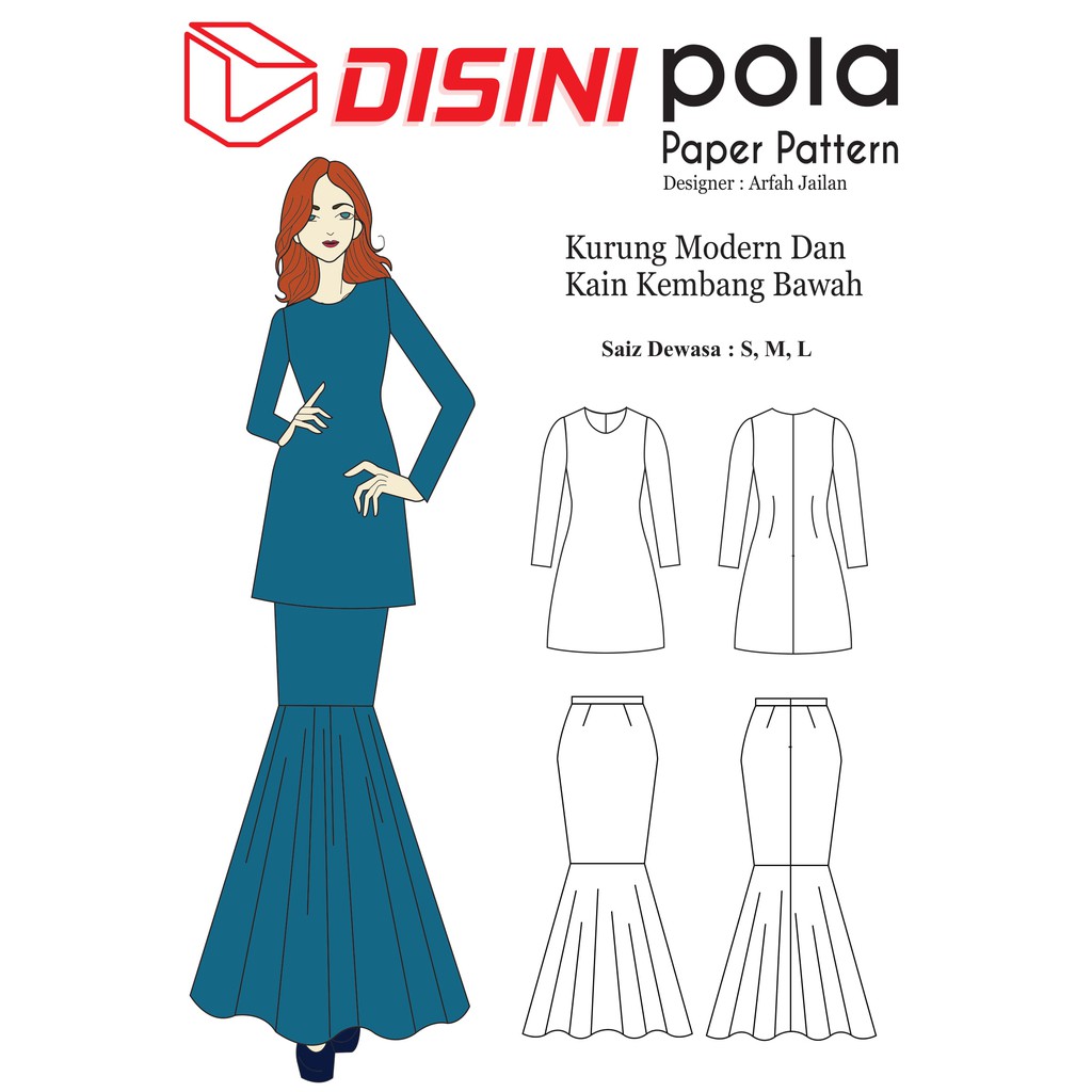 Pola Pakaian Baju Kurung Modern Dan Kain Sarung Selisih Sewing Pattern By Disini Designer Arfah Jailan Lazada